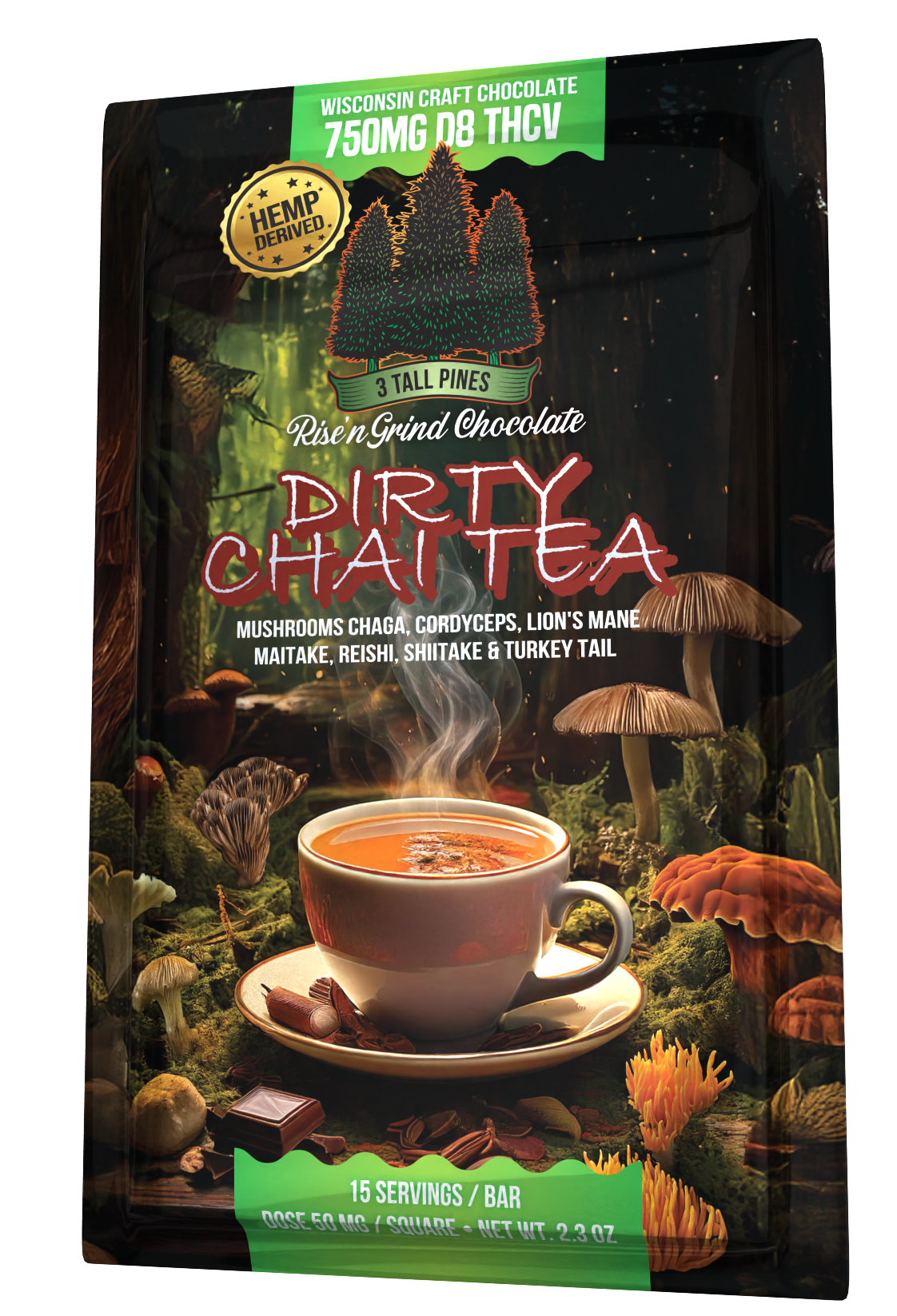 This delicious high end, milk chocolate bar is bursting with our 750mg Sativa blend of Delta 8, CBG, THCv, plus other cannabinoids, along with 5,000mg of our Mushroom Medley, Chai Spice, Milk Chocolate, and Himalayan Sea Salt!